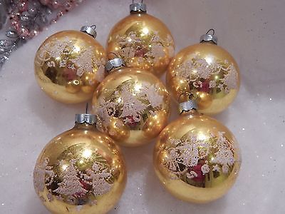 Title (ebay affiliate link): Stencil Scene Gold Christmas Ornaments Angels Mica Snow Trees Vtg Xmas