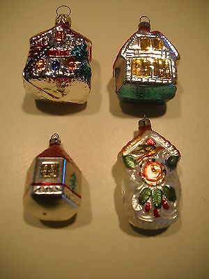 Vintage Lot Glass Poland/Germany 2 Houses 2 Bird Houses