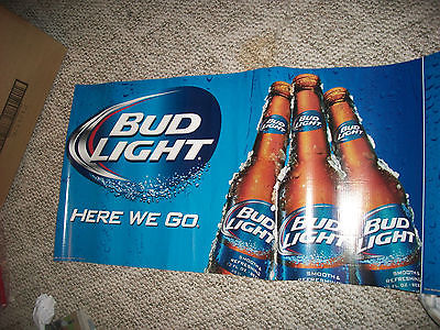 Title (ebay affiliate link): Bud LIght bottle blue graphic wall beer bar sign wrap cardboard 30ft Budweiser