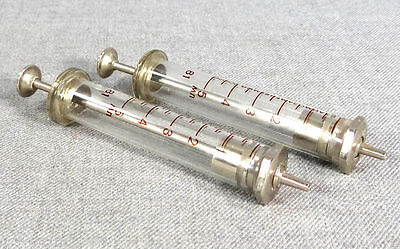 2 ANTIQUE MEDICAL SURGICAL PHYSICIANS DOCTOR GLASS&BRASS SYRINGES INSTRUMENT SET