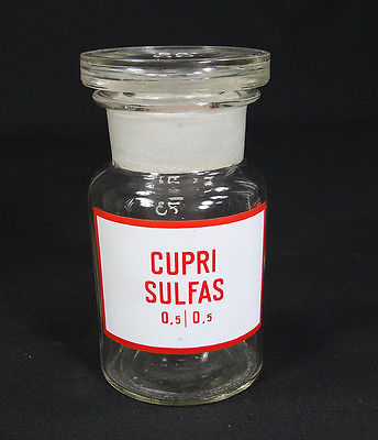 Title (ebay affiliate link): ANTIQUE APOTHECARY PHARMACY MEDICAL GLASS BOTTLE JAR STOPPER COPPER SULPHATE RX