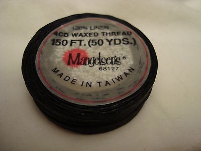 150 foot coil 100% bees waxed linen in black color for sewing & "thread buttons"