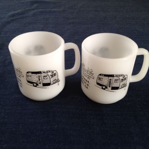 2 Vintage Serro Scotty Sportsman Milk Glass Mugs Cups