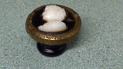 Victorian Edwardian Milk Glass Cameo Door Pull Knob Hardware Wood Metal Foil