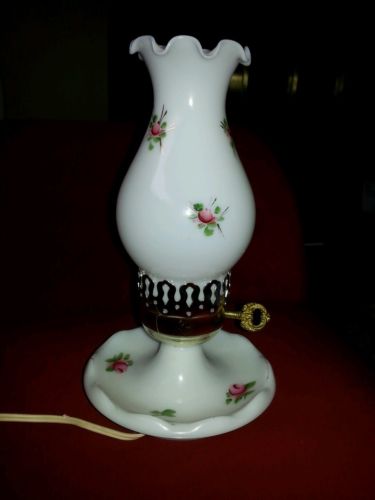Vintage Milk Glass Electric Hurricane Lamp Rose Design