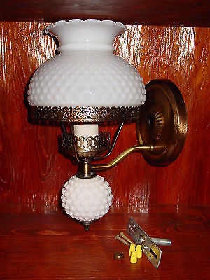 VINTAGE UNDERWRITERS LABRATORY WHITE HOBNAIL MILK GLASS WALL LIGHT LAMP FIXTURE