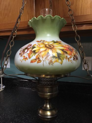 Title (ebay affiliate link): Hurricane Lamp Shade Hanging Swag Light White Milk Glass Ruffled chimney Vtg