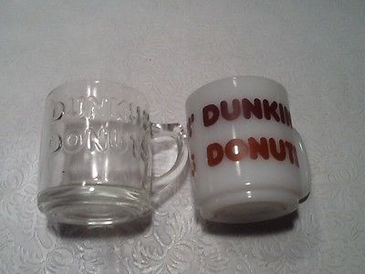 2 vintage Dunkin Donuts coffee mugs milk glass & clear