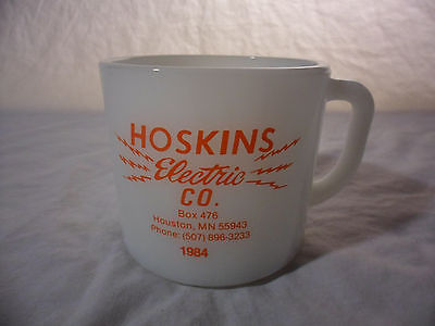 Vintage Oven Proof Milk Glass Hoskins Electric Company Mug Cup Lightning Bolts