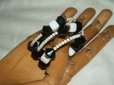 Title (ebay affiliate link): VINTAGE ART DECO WHITE MILK & BLACK ONYX GLASS STRETCH WRAP AROUND BRACELET