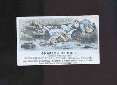 1800's Charles Stubbs Fish,Oysters,Lobsters dealer trade card,Worcester MA