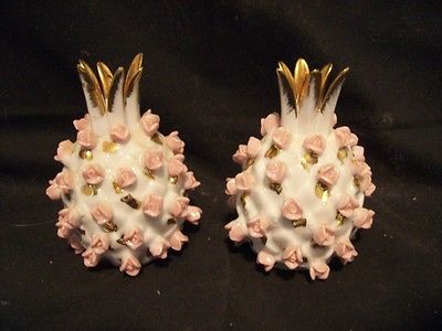 Title (ebay affiliate link): Salt & Pepper Shaker Capo Di Monte Pink Roses Piineapple Shape