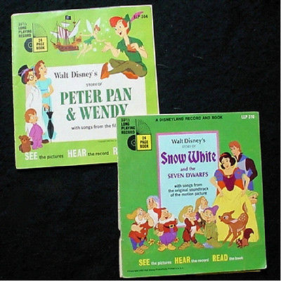 Title (ebay affiliate link): 2 VINTAGE 1960'S DISNEY BOOK & RECORD SETS- PETER PAN & SNOW WHITE