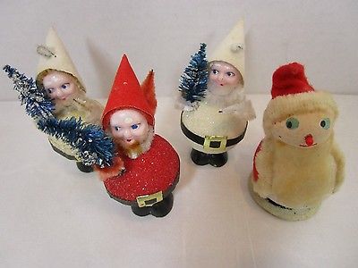 Lot- 4 vintage rolypoly mica glitter Japan CANDY CONTAINER gnome santa ornaments