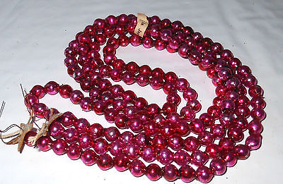 Vintage Mercury Glass Christmas Garland Beads - Small Pink/Red 48" Japan