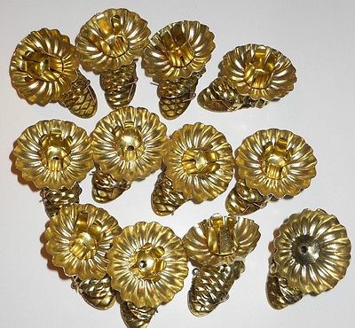11 Vintage Gold Tin Metal Clip On Christmas Tree Candle Holder