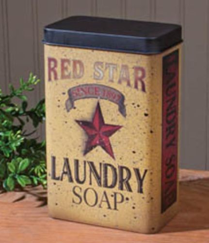 Title (ebay affiliate link): Primitive Laundry Soap Advertising Tin Vintage Style Canister Bath Laundry Room