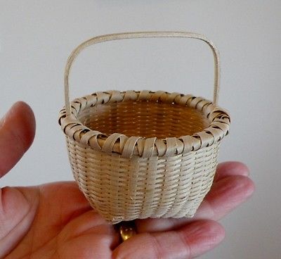 Title (ebay affiliate link): Finely Woven Miniature Splint Ash Basket w/ Cathead Base, Double-Wrapped Rim