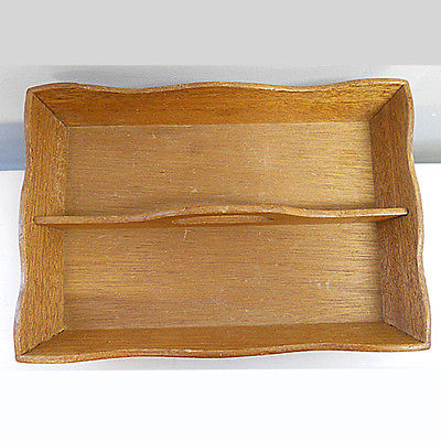 Title (ebay affiliate link): Wooden Tray Cutlery Utensil Flatware Holder Handmade Box Tote Dovetail Joint EC