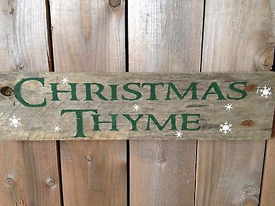 Primitive Christmas Thyme Winter Weathered Wood Sign 3.5x13.5" Rustic Stencil