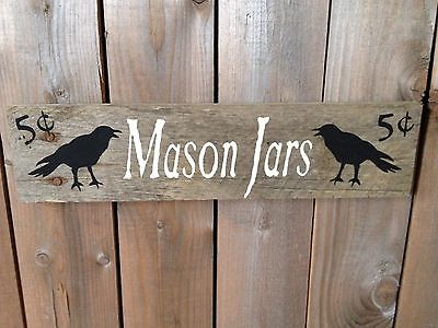 Title (ebay affiliate link): Primitive Mason Jars Crows Wood Sign 3.5x13.5" Rustic Stencil Rusty Nails