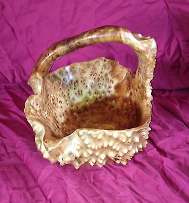 Title (ebay affiliate link): PRIMATIVE WOOD BURL BASKET WITH HANDLE FOLK ART BOWL NATURAL WOODEN CENTERPIECE