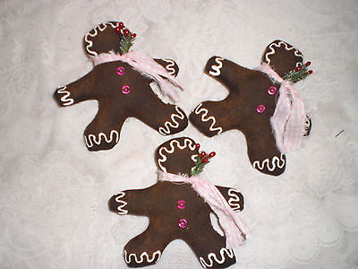 Primitive Dark Brown Christmas Gingerbread Ornies Bowl Fillers Decor Set of 3