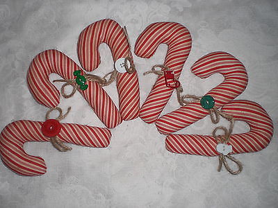Title (ebay affiliate link): Primitive Christmas Red & White Striped Candy Cane Ornies Bowl Fillers Decor