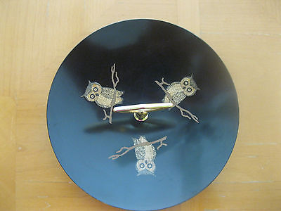 Title (ebay affiliate link): Vintage COUROC OF MONTEREY Owl Motif Handled Tray Wood Brass Inlay In Black
