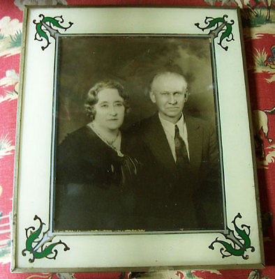 Title (ebay affiliate link): Vintage Reverse PAINTED Glass FRAME with scrolly green corners 11x13"