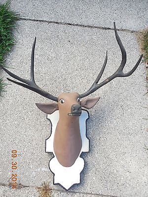 Antique DEER HEAD WOOD CARVING Folk Art SCULPTURE Wall Mount LIFE SIZE Buck Head
