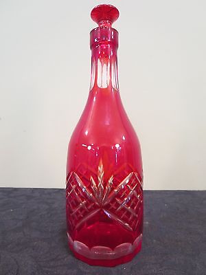 ATTRACTIVE VINTAGE BOHEMIAN CRANBERRY HAND CUT GLASS DECANTER LIQUOR BOTTLE