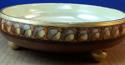 Antique Bavarian Hand Painted Art Deco Arts & Crafts Bowl with Acorns &Ball Feet