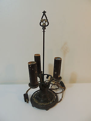 Vintage Antique Ornate Three Socket Brass Bronze Lamp with Cloth GE Cord