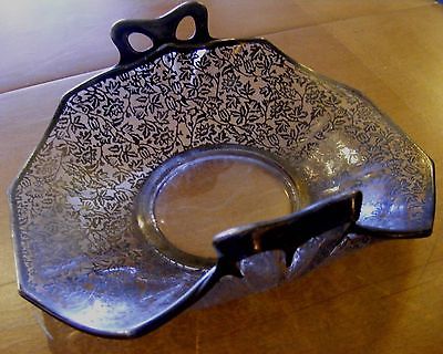 Title (ebay affiliate link): Vintage 2 Handled w/ Silver Color Overlay Depression Glass Nappy Candy Bowl Dish