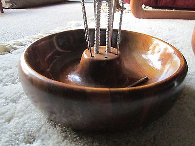 Vintage HEAVY wood nut bowl with nutcracker and picks holder