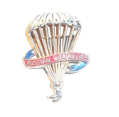Title (ebay affiliate link): VINTAGE RUSSIAN WAR RELIEF PIN WW2 PARACHUTE WITH RED BANNER