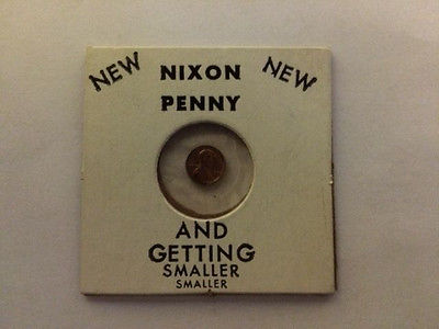 Title (ebay affiliate link): Funny Old Vintage 1964 Tiny Joke Penny Getting Smaller Richard Nixon President