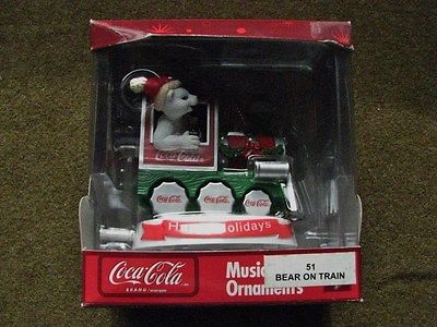 Title (ebay affiliate link): Coca Cola Christmas Ornament - Bear on Train - Makes Train Sounds - Musical