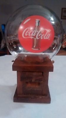 Vintage 1950's Coca Cola Glass Globe With Wooden Base Nut or Gumball Dispenser