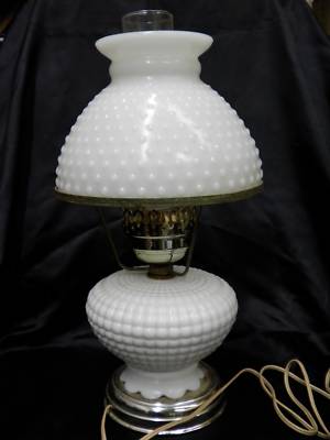 Vintage Gone With Wind Milk Glass Hobnail Lamp 17"