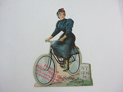 Title (ebay affiliate link): 1896 Victorian Figural Woman Riding Spalding Bicycle Easel Stand Trade Card