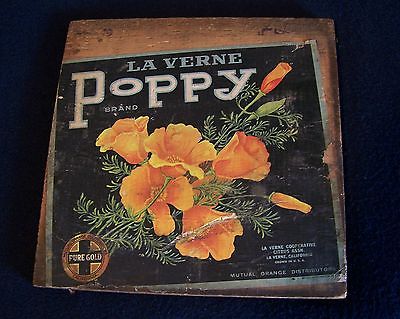 "POPPY BRAND" LA VERNE COOPERATIVE CITRUS ASSN. LA VERNE, CALIF. CRATE LABEL