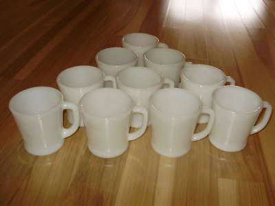 10 FIRE KING ANCHOR HOCKING MILK GLASS D HANDLE MUGS
