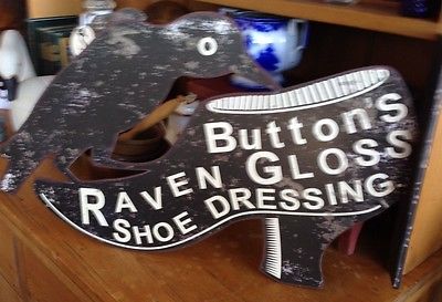 Vintage Antique Style Button's Raven Gloss Shoe Metal/Tin Advertising Sign