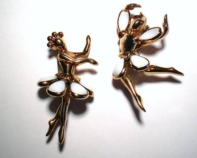 Vintage Dancers Pin Set Milk Glass-Style of TRIFARI