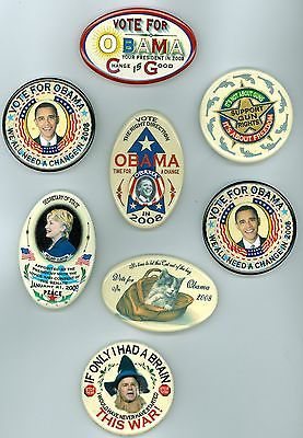 Title (ebay affiliate link): 8 Assorted 2008 President Obama Hillary Political Campaign Pinback Buttons