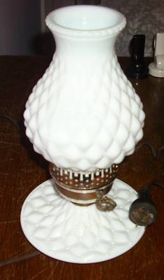 Vintage Quilted Base & Shade Milk Glass Hurricane Lamp