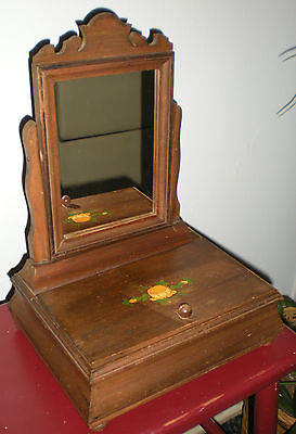 Vintage Wooden Shaving Swivel Mirror Valet Box Hinged Lid Knob Feet