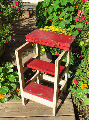 Title (ebay affiliate link): Antique Primitive Farmhouse Step Stool Stand Wood w/ OLD Red White Paint Vintage